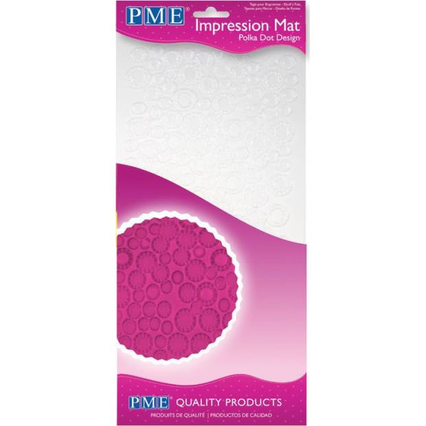 Strukturální otiskovací podložka se vzorem koleček pro otlačování dezénů do potahových hmot, čokolády, čokoládové polevy a dalších potravinářských surovin. Rozměr podložky je 15x30 cm. Je z ohebného průhledného plastu.