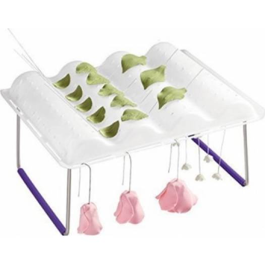 Formujte bezchybnou gumovou pastu a květiny s použitím stroje na sušení květin. Jedinečně zakřivené vlnové květy, které vytvářejí realistické květy, zatímco vyvýšený regál umožňuje zavěsit drátěné květiny a udržet tak jejich přirozený tvar. Skvělé pro drátěné a bezdrátové fondantové květiny a listy, když jsou suché. Větrací otvory umožňují rychlejší vysoušení s pomocí vzduchu. Vnější okraj poskytuje dostatek místa pro větší sestavené květiny nebo silnější drátěné kousky. Pohyblivé nožičky poskytují mimořádnou stabilitu a sklopné nožičky se skládají pro úspory místa.