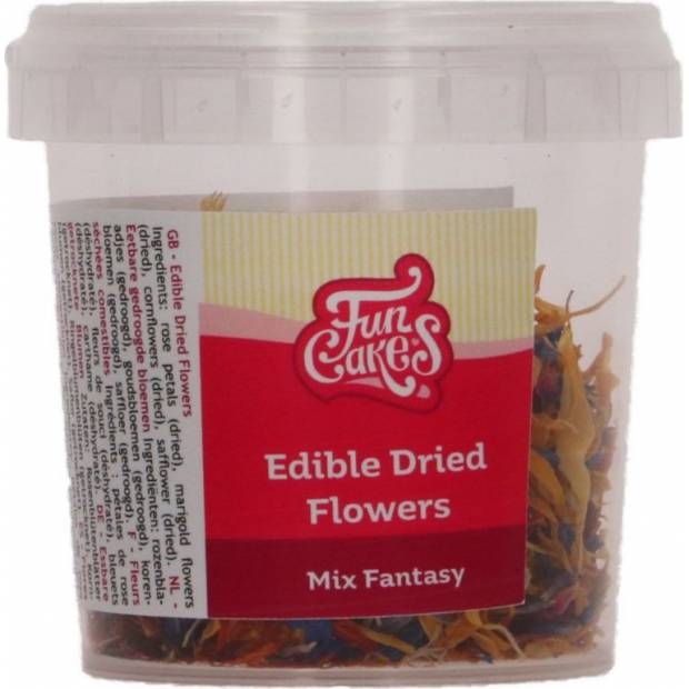 Krásné jedlé sušené květiny na zdobení cupcaků, dortů a dalších. Použijte je například na oslavu nebo svatební dorty. Ideální pro zdobení jakéhokoli dortu, cupcaků nebo pečiva. Vyrobeno ze 100% sušených květin. Skladování: skladujte na chladném a suchém místě. Chraňte před slunečním zářením a nevystavujte teplotám nad 50°C. Doba použitelnosti: 365 dní. Baleno v průhledné plastové vaničce s etiketou.