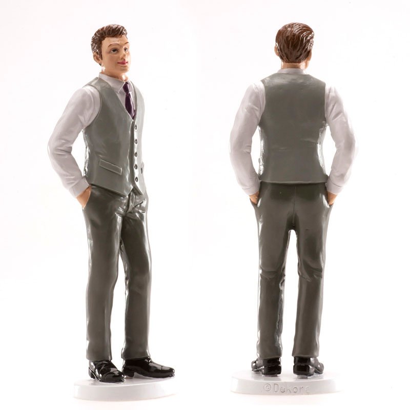 Elegantní sváteční ozdoba je ideální pro zdobení svatebních dortů. Svatební figurka je jednoduché a elegantní řešení pro zdobení dortů. Hlavní a jedinou postavou této dekorace vyrobené z pryskyřice je samostatný ženich v elegantním oblečení bez saka. Vyznačuje se spontánním, zábavným a elegantním stylem. Splňuje všechny požadavky evropských norem a je vhodná pro styk s potravinami. Výrobek je vhodný pro profesionální použití v cukrárnách. Tato nejedlá dekorace se dá využívat opakovaně, můžete si ji schovat jako vzpomínku na váš svatební den. Výška 16 cm.