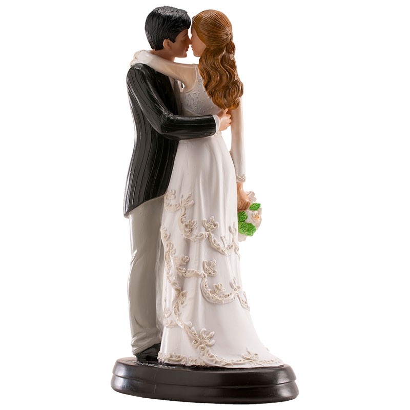 Elegantní sváteční ozdoba je ideální pro zdobení svatebních dortů. Svatební figurka je jednoduché a elegantní řešení pro zdobení dortů. Hlavními postavami této dekorativní figurky vyrobené z pryskyřice jsou novomanželé při něžném polibku. Vyznačuje se spontánním, zábavným a elegantním stylem. Splňuje všechny požadavky evropských norem a je vhodná pro styk s potravinami. Výrobek je vhodný pro profesionální použití v cukrárnách. Tato nejedlá dekorace se dá využívat opakovaně, můžete si ji schovat jako vzpomínku na váš svatební den. Výška 18 cm.
