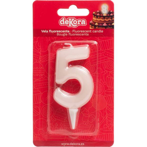 Svíčka na dort číslo 5 - svítí ve tmě. Velikost 6 cm.