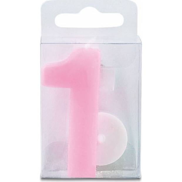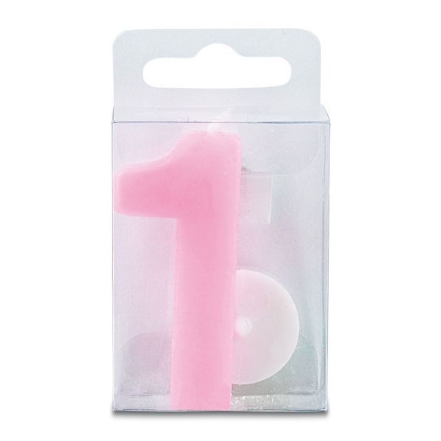 Svíčka ve tvaru číslice 1, růžová barva, výška 4 cm. Je vhodná především pro zdobení narozeninového dortu a podobných moučníků. Svíčka splňuje všechny bezpečnostní předpisy.