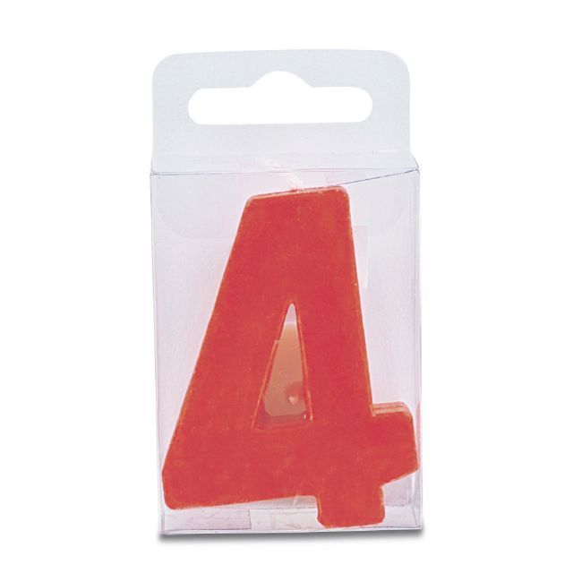 Svíčka ve tvaru číslice 4, výška 4 cm, červená barva. Je vhodná především na narozeninový dort a zdobení podobných moučníků. Svíčka splňuje všechny bezpečnostní předpisy.