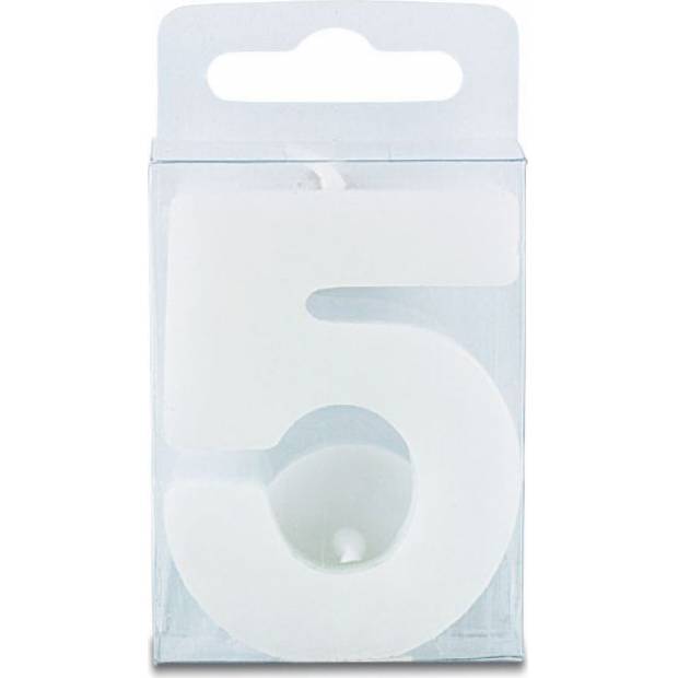 Svíčka ve tvaru číslice 5, výška 4 centimetry, bílá
