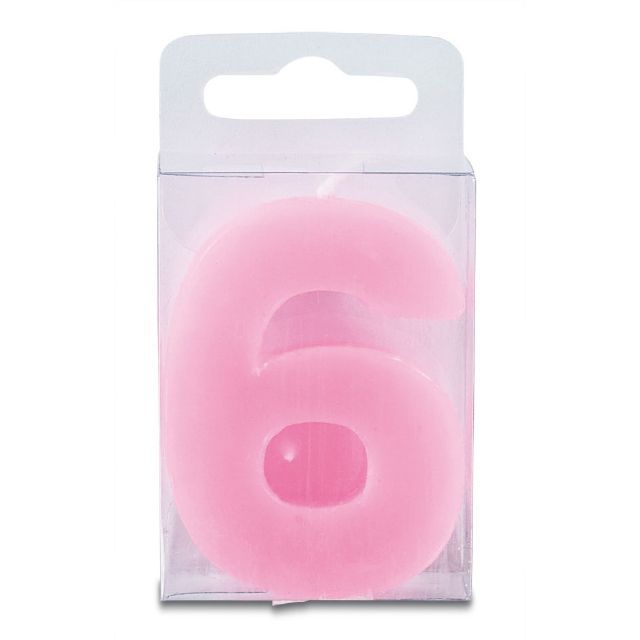 Svíčka ve tvaru číslice 6, růžová barva, výška 4 cm. Je vhodná především pro zdobení narozeninového dortu a podobných moučníků. Svíčka splňuje všechny bezpečnostní předpisy.