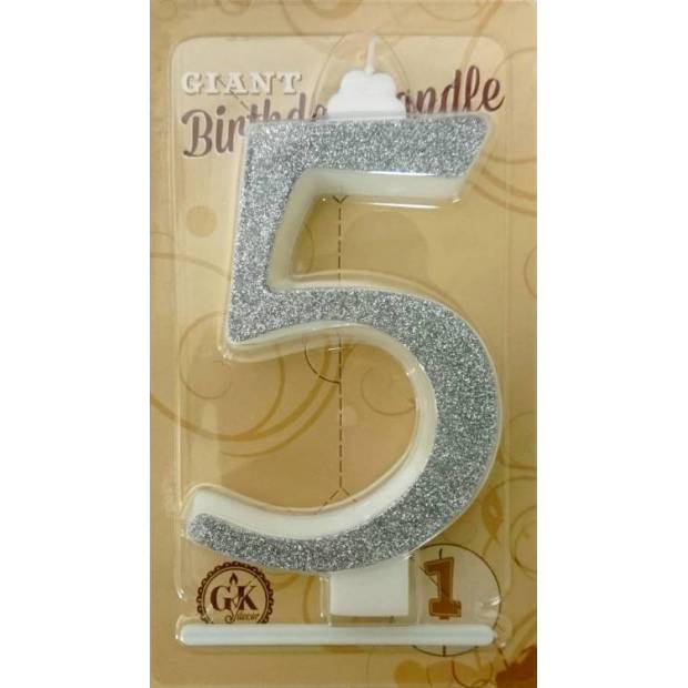Svíčka velká stříbrná číslo 5 6426 dortis