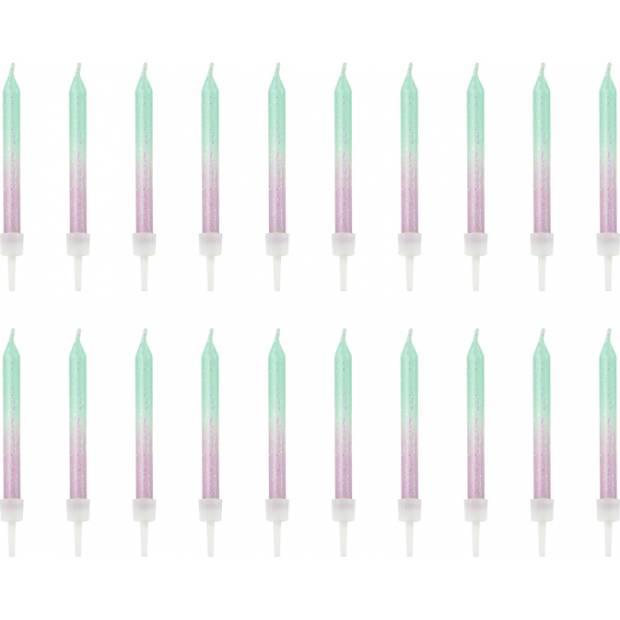 Svíčky na dort v barvách Ombre. V balení 20 ks, délka 6 cm.