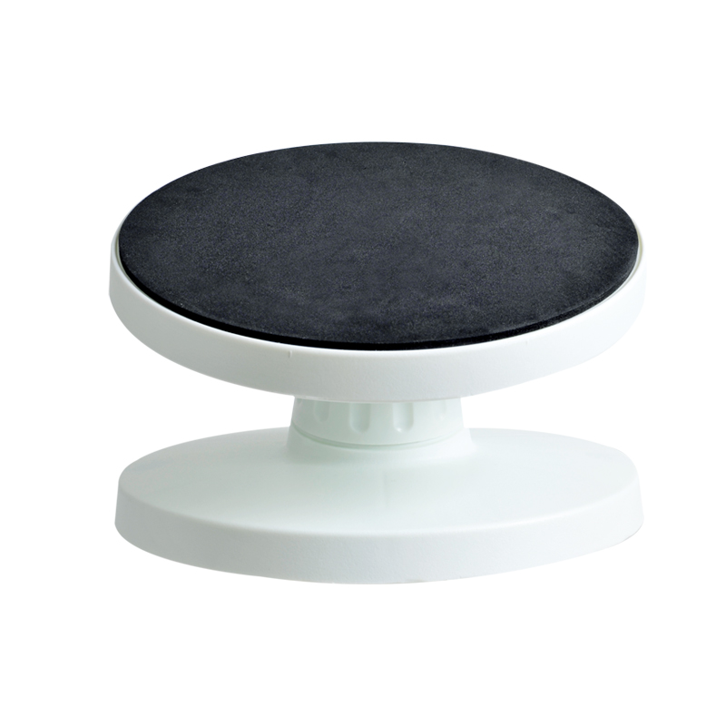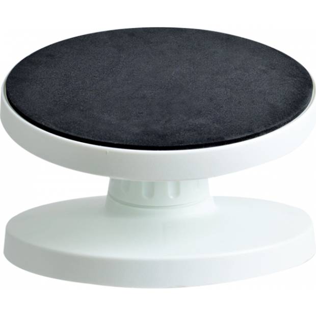Bílá plastová točna s černým nepřilnavým povrchem na vrchní straně, udrží jakýkoli dort na svém místě bez pohnutí a to i při naklopení točny. Protiskluzové body na dolní straně této točny, drží pevně k povrchu a během zdobení dortu, točna neklouže po pracovní ploše.