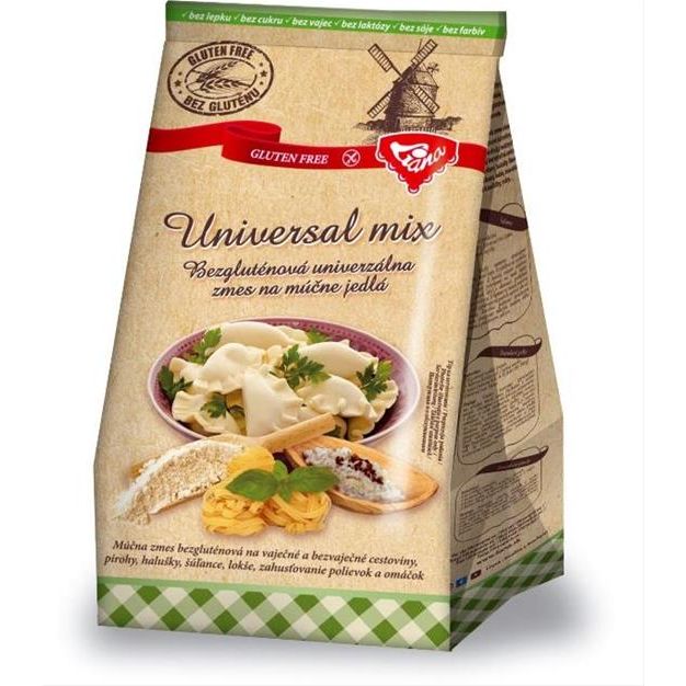 Dietetická potravina, bezlepková univerzální směs na moučná jídla určená i pro zvláštní výživu pro osoby s nesnášenlivostí lepku. Obsahuje přirozeně bezlepkové a bezpšeničné suroviny (kukuřičná a rýžová mouka). Vhodná na bezvaječné a vaječné těstoviny, pirohy, noky, šulance, lokše, zahušťování polévek a omáček. Způsoby použití jsou publikovány na obalu výrobku (např. postup přípravy na bramborové noky, kuličky, tvarohové kuličky...). Možnost použití dle vlastních receptů.