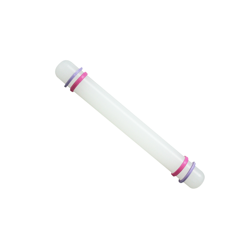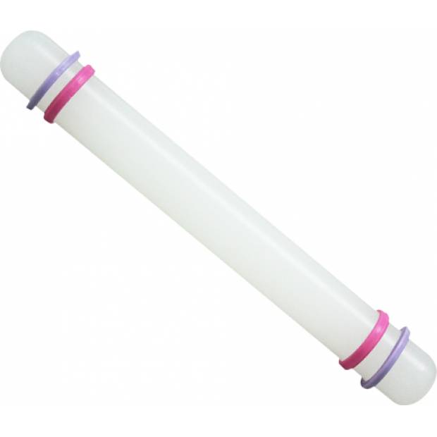 Spolehlivý, nepřilnavý plastový váleček na potahovací hmotu s nástavci je vhodný na takové cukrářské hmoty jako je fondán a marcipán. Vhodná pomůcka pro válení hmoty určené na zdobení dortů. Rozměry 22,5 cm.
