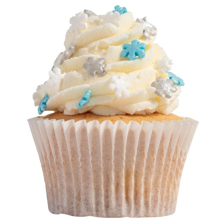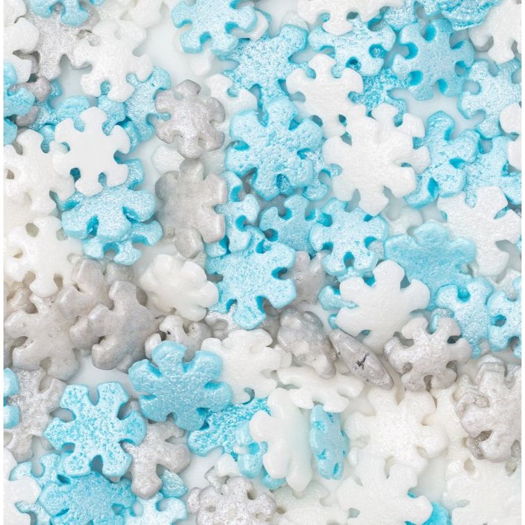 Jemné modré, bílé a stříbrné sněhové vločky dodají tvému vánočnímu pečení kouzelný zimní efekt a okamžitě rozzáří každý dezert.