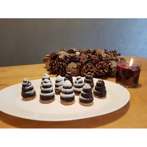 5. Nakonec každé Vosí Hnízdo uzavřeme celým piškotem. Celé přendáme do chladničky ztuhnout. Po ztuhnutí formu otočíme a vyndáváme již hotová Vosí Hnízda. Ty uchováváme v chladu a suchu.