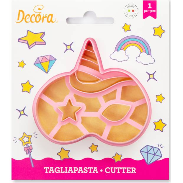 Použijte vykrajovátko ve tvaru masky jednorožce a vytvořte lahodné a voňavé tvary cukroví nebo cukrových past na dorty a sladkostí. Vykrajovátko je vyrobeno z odolného plastu, má dostatečně ostré hrany pro vykrojení těsta i marcipánu.