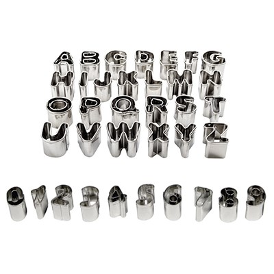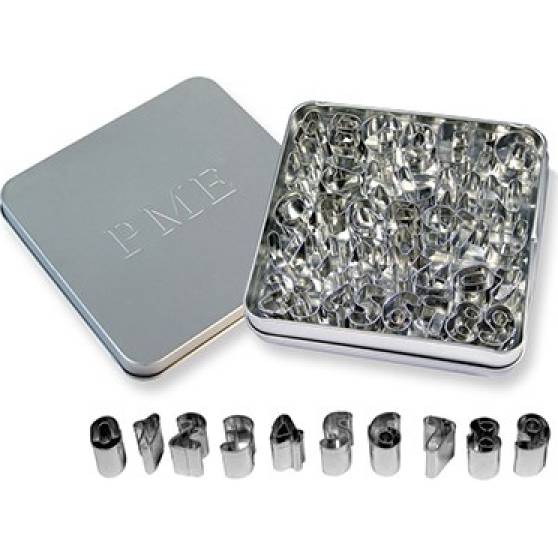 Tato sada od PME obsahuje šikovné vyřezávače malých písmen a číslic. Ideální pro vytvoření skvělé zprávy na dortu, cupcakes nebo sušenkách. Nebo použijte vykrajovátka k personalizaci narozeninového dortu. Tato sada obsahuje písmena A až Z a čísla 0 až 9. Velikost: cca. 1,5 x 1,8 cm. Obsah: 36 vykrajovátek v kovovém úložném boxu.