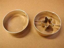 Vykrajovátko na cukroví ve tvaru kolečka průměrem 4 cm a květem uprostřed
