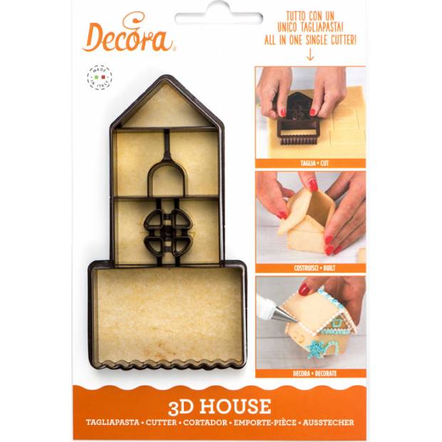 Vytvořit 3 dům je s těmito vykrajovátky velmi snadné. Sada obsahuje všechny prvky, které musí dům mít. Těsto dvakrát vykrojte, sestavte jednotlivé části k sobě. Jako lepidlo poslouží med, marmeláda nebo sníh. Pečivo vykrájejte tak, abyste získali jednotlivé kusy domečku. Vaše perníková chaloupka tak bude vypadat naprosto dokonale. Vykrajovátka jsou vyrobená z kvalitního plastu. Rozměry hotové chaloupky: 6,5 x 12,5 x 2,2 cm, rozměry vykrajovačky: 4,5 x 5,5 x 5 cm.