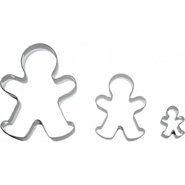 Sada tří vykrajovátek s ostrou hranou pro vždy perfektní vykrojení cukroví ze všech druhů těsta. Největší panáček má rozměry 75 × 95 mm. Pomocí sady se můžete pustit do přípravy 3D cukroví, kdy upečené panáčky lepíte na sebe pomocí krému či marmelády podle velikosti. Vykrajovátka jsou vyrobena z pocínovaného plechu. Výška plechu je 16 mm.