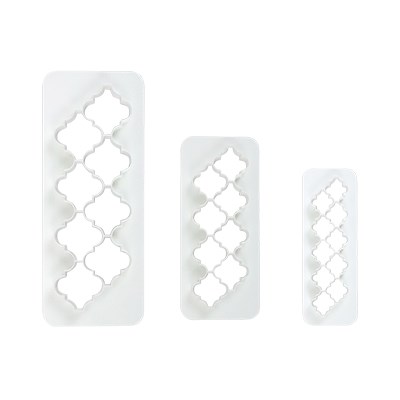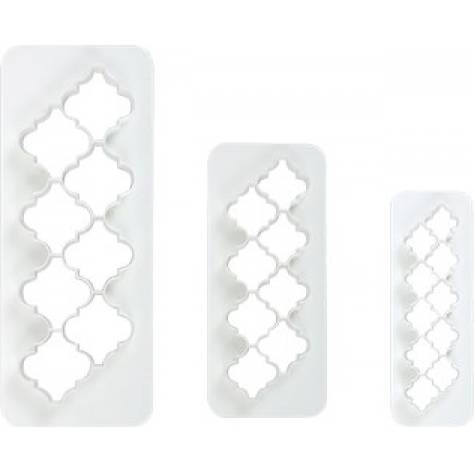 Díky těmto ostrým řezacím vykrajovátkám bude váš život hračkou. Jednoduše rozbalte svou cukrářskou hmotu a můžete vytvářet přesné geometrické obrazce. Ostrý řez také znamená, že nedochází k žádným potížím a můžete si být jisti, že vaše tvary budou pokaždé vypadat bezchybně. S každým vykrajovátkem vytvoříte 10 tvarů najednou. Vytvořit můžete různé tvary z cukrové pasty, potahovací hmoty či jiné hmoty. Nebojte se použít lesklé, matné, pastelové či metalické barvy pro zdůraznění těchto vykrojených dílků. Vyrobeny jsou z plastu, který je zdravotně nezávadný a lehký. V balení 3 kusy vykrajovátek různých rozměrů.