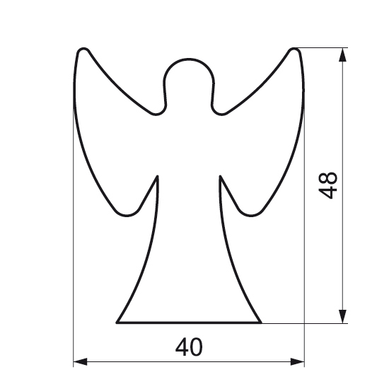 Vykrajovátko cukroví ve tvaru stojícího anděla s křídly je vyrobené ze zdravotně nezávadného pocínovaného plechu. Ostrá hrana vykrajovátka zaručuje dokonalý tvar, hladký povrch se snadno umývá. Výška pásku je 16 mm.