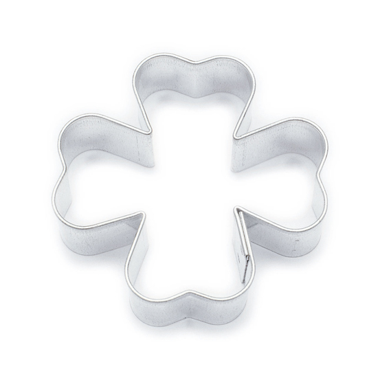 Vykrajovátko na cukroví ve tvaru většího čtyřlístku o velikosti 4,8 x 4,8 cm.