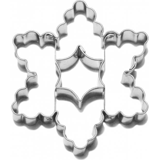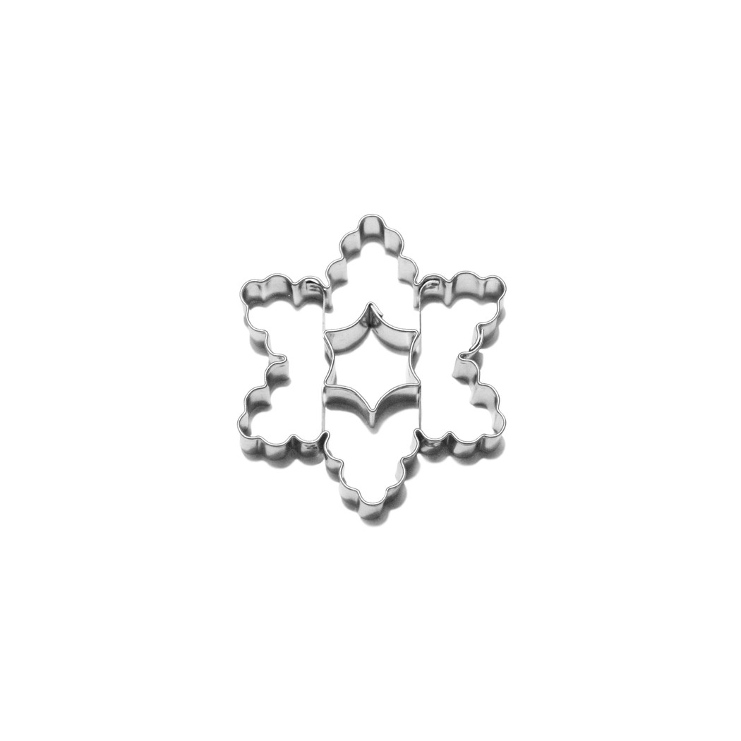 Vykrajovátko na cukroví z různých druhů těsta v podobě vroubkované hvězdy, které má uprostřed vykrojenou malou oblou hvězdičku. Na konečné ozdobení upečeného kolečka můžete použít různé cukrářské hmoty, krémy i jedlé zdobení, a také zdobící sady, které máme v nabídce. Vykrajovátko je vyrobené ze zdravotně nezávadného pocínovaného plechu a velmi snadno se po použití umývá.