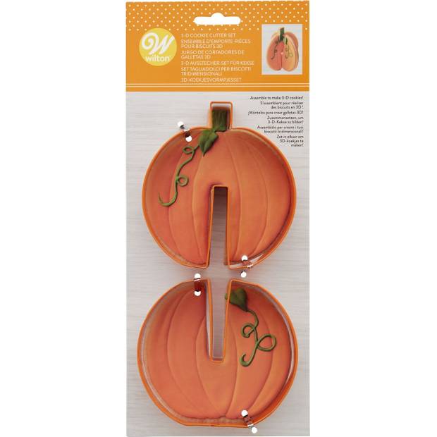Tato 2-dílná sada vykrajovátek od Wiltonu je ideální sada pro výrobu dýňových halloweenských sušenek. Tato sada obsahuje 2 dýňové vykrajovačky, které při připojení vytvoří 3D dýně.