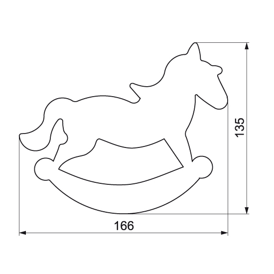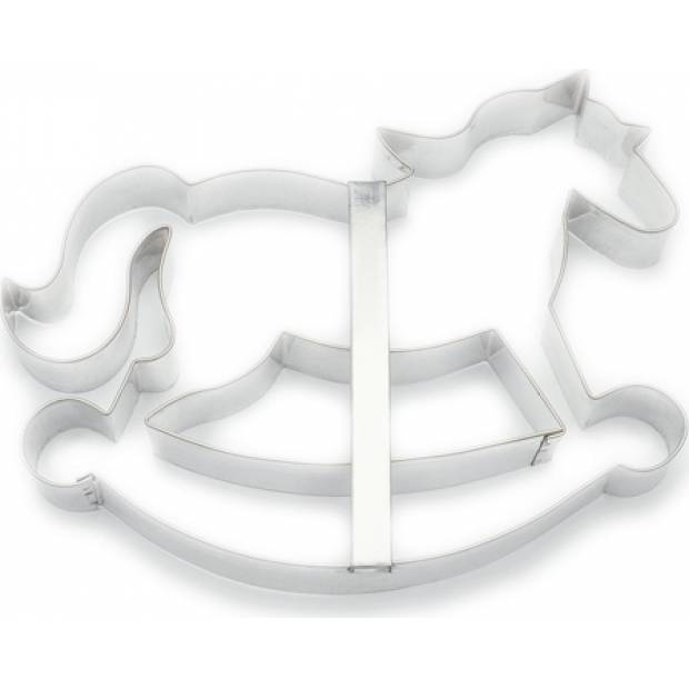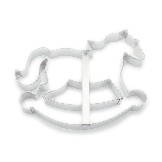 Vykrajovátko na cukroví ve tvaru houpacího koně s rozměry 16 x 13,5 cm. Vykrajovátko je vyrobené z kvalitního pocínovaného plechu. Ostrá spodní hrana vykrajovátka, zdvojený horní okraj a spona v nejširší části zaručují vždy dokonale vykrojený tvar.