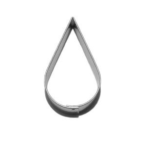 Vykrajovátko ve tvaru kapky vyrobené z pocínovaného plechu.