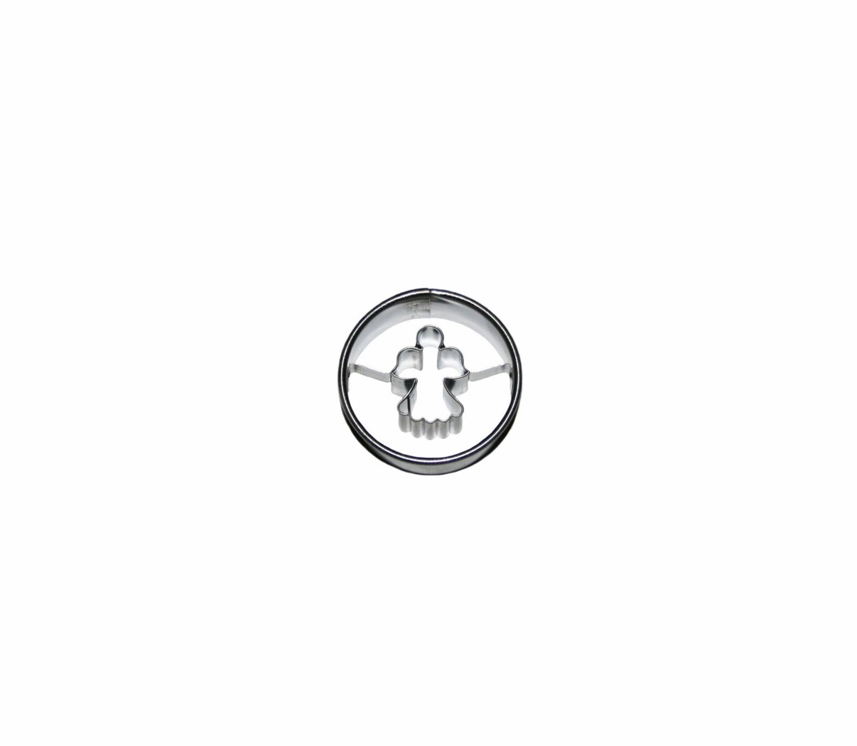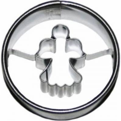Vykrajovátko cukroví z různých druhů těsta v podobě kolečka, které má po vykrojení volný střed ve tvaru anděla. Je vyrobené ze zdravotně nezávadného pocínovaného plechu a velmi snadno se po použití umývá. Na konečné ozdobení upečeného cukroví můžete použít různé cukrářské hmoty, krémy, jedlé zdobení i zdobící sady, které máme v nabídce samozřejmě také. Rozměry: průměr 4 cm / výška 1,6 cm