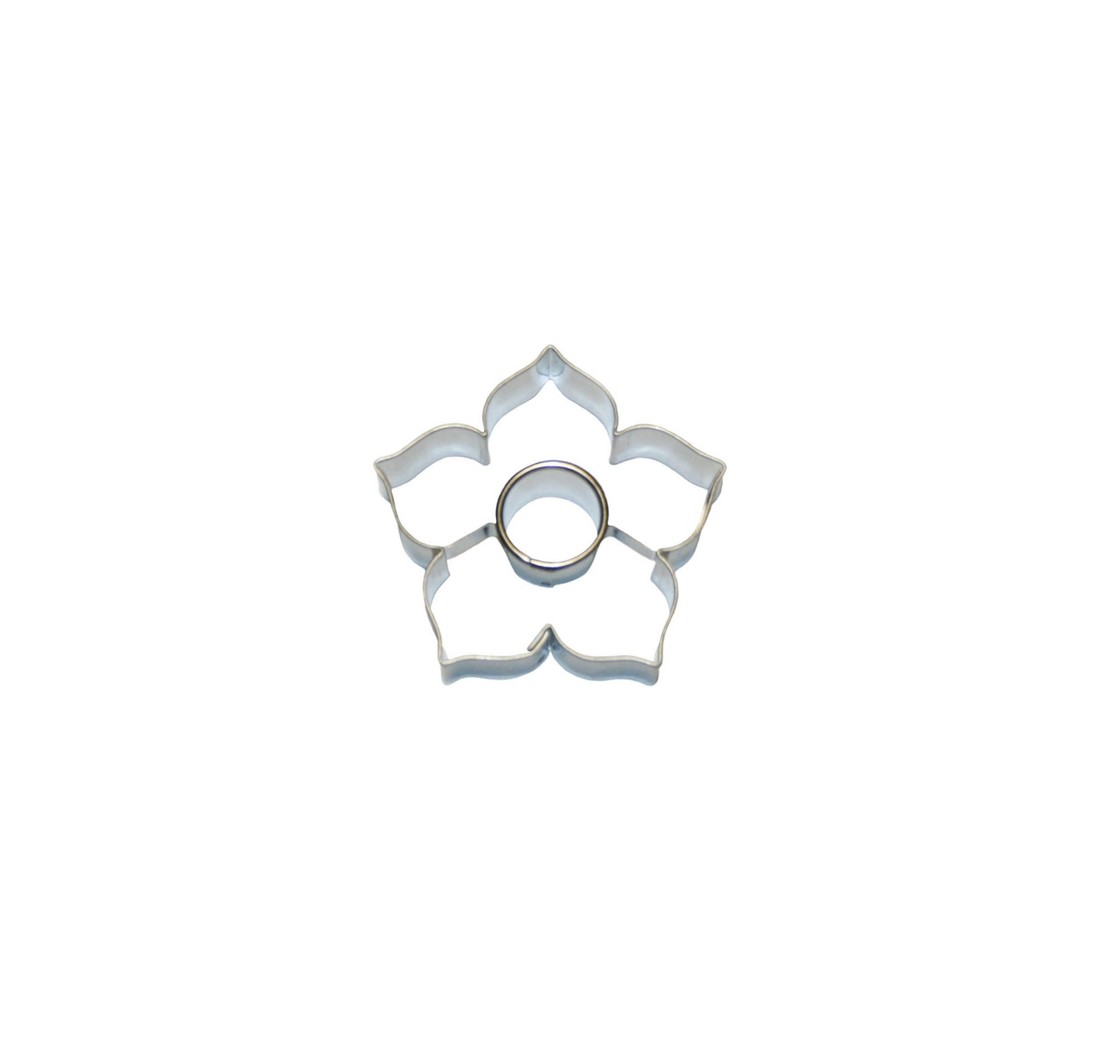 Vykrajovátko cukroví z různých druhů těsta v podobě květu lilie, která má po vykrojení ve středu volné kolečko. Je vyrobené ze zdravotně nezávadného pocínovaného plechu a velmi snadno se po použití umývá. Na konečné ozdobení upečeného cukroví můžete použít různé cukrářské hmoty, krémy, jedlé zdobení i zdobící sady, které máme v nabídce samozřejmě také. Rozměry: 5,5 x 5,7 cm / výška 1,6 cm