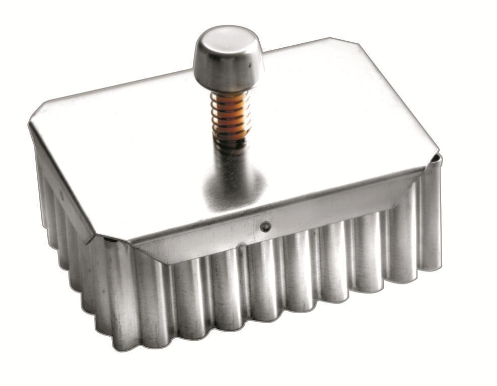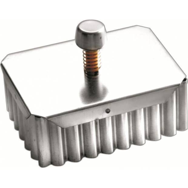 Kvalitní formička na dort, která obsahuje potřebné madlo. Výrobek, jehož rozměry jsou 4x6cm, což je naprosto ideální velikost pro francouzskou pochutinu „Petit Beurre“. Vlnité okraje formy utváří originální a nápaditý pokrm. Vhodné pro omývání pod vodou s mycím přípravkem. Forma nevhodná do myčky na nádobí.