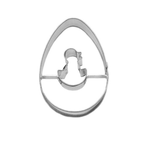Vykrajovátko vajíčko s kuřátkem. Rozměry 38 x 54 mm.
