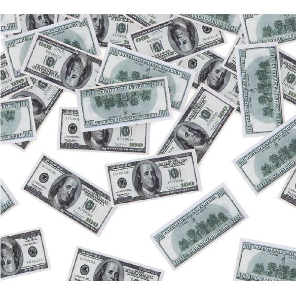 Vystřelovací konfety peníze 100 dolarové bankovky. 40 cm.