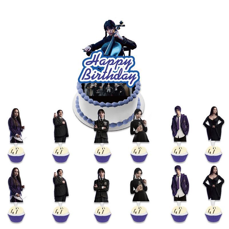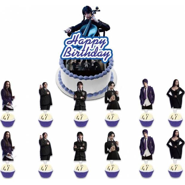 S tímto zápichem můžete připravit tématické dezerty. Téma Wednesday je perfektní pro milovníky tohoto seriálu i hlavní hrdinky samotné. Sada obsahuje 13 kusů zápichů s různou grafikou. Barevná sada zpestří dekoraci stolu.