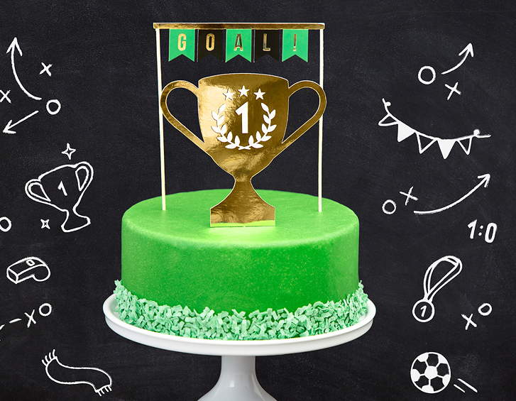 Připravujete narozeninový dort pro fotbalového fanouška? Zde je dokonalá dekorace: 2 zápichů do dortu s fotbalovou tématikou. Tyto elegantní zápichy představují pohár a transparent „Gól“. Jednoduše položte tyto 2 dekorace na dort a získejte dokonalý výrobek na oslavu. Velikost zápichu ve tvaru banneru: cca. 20 cm vysoký. Velikost zápichu pohár: cca. 15,5 cm.