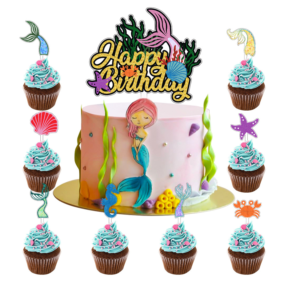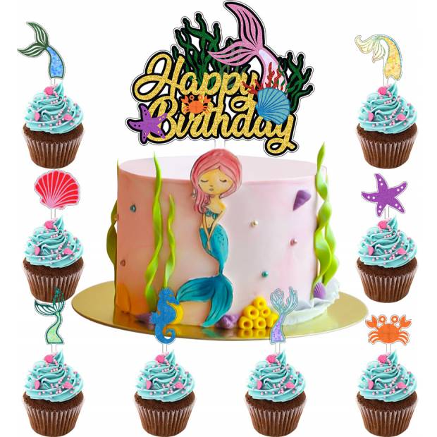 Zápich do dortu s motivem moře. V balení 9 ks.