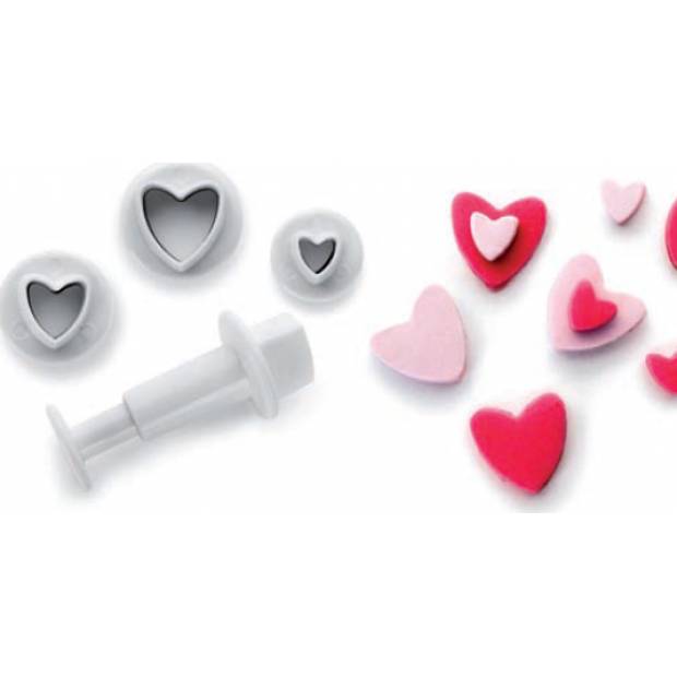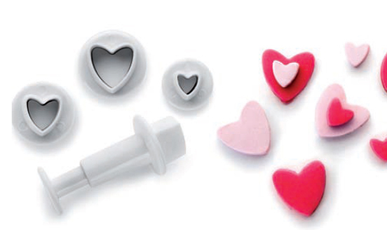 Odolný potravinářský plast je materiálem, z něhož jsou vyrobeny vykrajovačky ve tvaru srdíček. Dopřejte si tuto praktickou zdobící sadu, s níž můžete vytvářet ozdobné prvky podle svých potřeb. Základem balení je plastová zdobička s vyhazovačem, díky čemuž můžete vytvářet jedno sladké srdce za druhým. Tři vyměnitelná zdobítka se neodlišují vzhledem, nýbrž velikostí. Snadno omyvatelná zdobící sada. Práce bude bavit i děti a určitě vám pomohou, pokud jim to dovolíte.