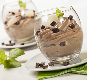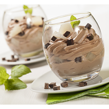 500 g Zeesan Čokoláda, 625 g voda (cca 25°C), 2500 g šlehačka Zeesan rozmícháme s vodou, přidáme 1/4 vyšlehané šlehačky a metličkou zašleháme do hladka