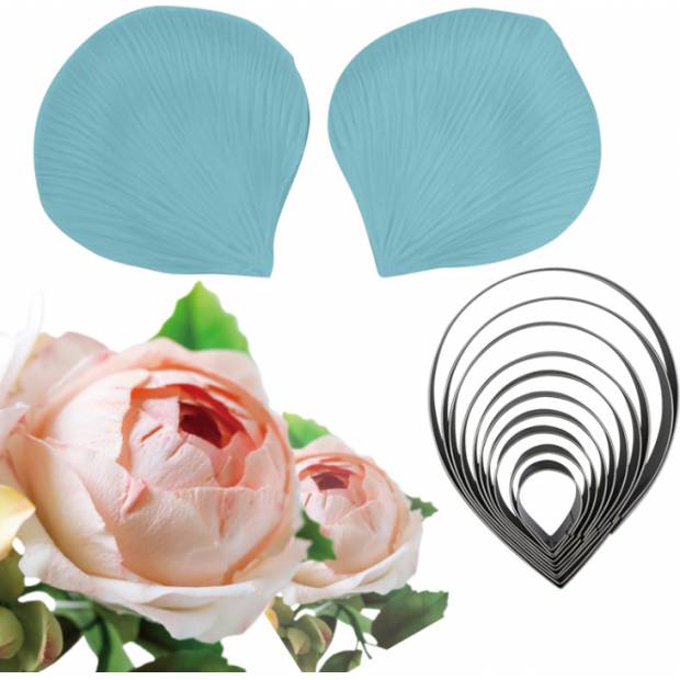 S pomocí tohoto žilkovače a vykrajovátka můžete vytvářet dokonalé růže s květy a listy z marcipánu, fondánu nebo modelovací čokolády. Žilkovač a vykrajovátko jsou vyrobeny z kvalitního materiálu.